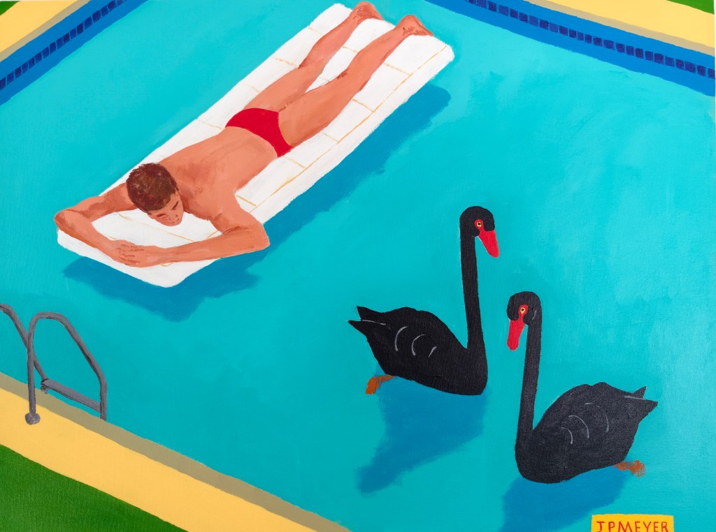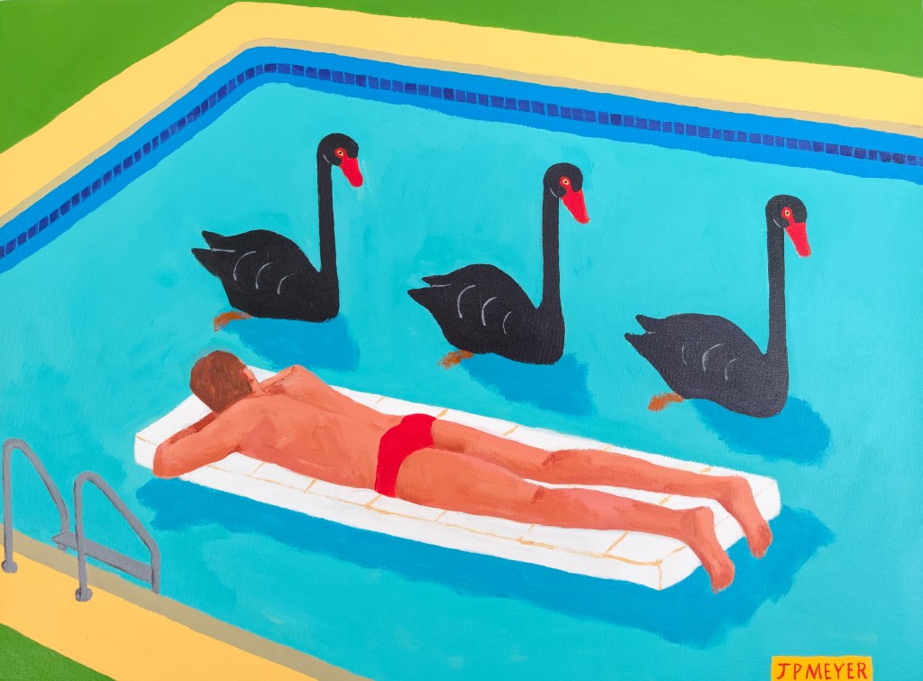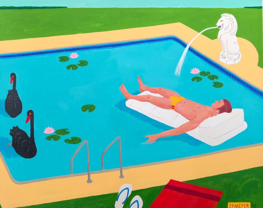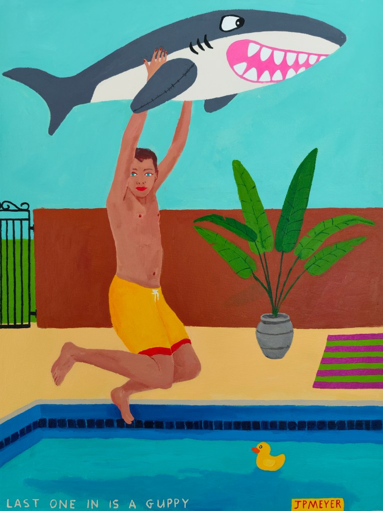 The Maiden Voyage Acrylic on canvas 80 x 100 cmLast one in is a Guppy Acrylic on Canvas 60 x 80 cmMidday Recital Acrylic on Canvas 60 x 80 cmThe Accidental Voyeur Acrylic on Canvas 60 x 80 cmThe Bronze Warrior Acrylic on Canvas 100 x 80 cmThe preservation of leisure Acrylic on Canvas 60 x 80 cmWe must Trim the Eugenias. Mmmm Acrylic on Canvas 120 x 150 cmWhere do you go when you have nowhere else to be. Acrylic on Canvas 120 x 150 cm